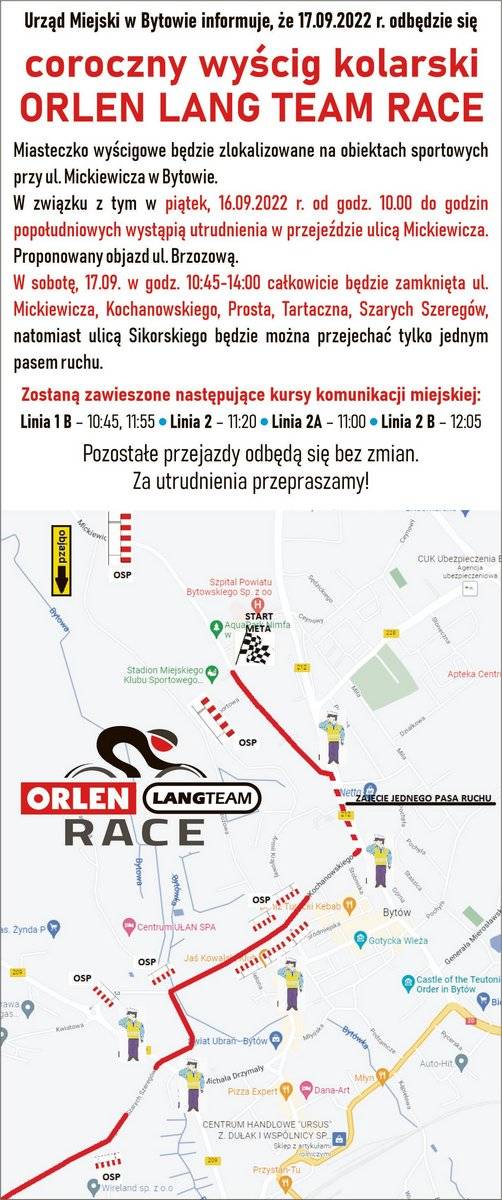 W sobotę 17.09. po raz kolejny w Bytowie odbędzie się wyścig z cyklu ORLEN Lang Team Race. Łączna pula nagród wyniesie ponad 20 tys. zł.