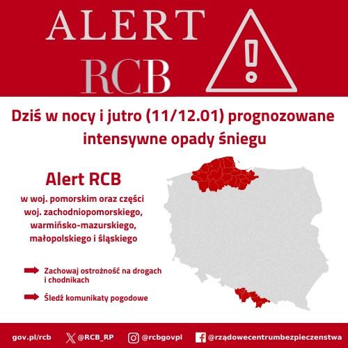 Co nas czeka w najbliższych godzinach? Raczej nie możemy się spodziewać polepszenia sytuacji, Rządowe Centrum Bezpieczeństwa wydało bowiem kolejny komunikat prognozujący dziś w nocy i jutro intensywne opady śniegu. „Zachowaj ostrożność na drogach i chodnikach. Śledź komunikaty pogodowe" – głosi alert.