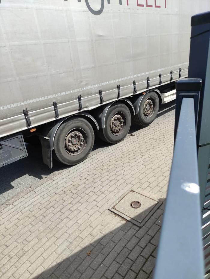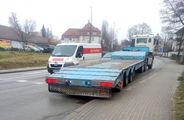 Piotr Szulta ma zdjęcia, jak samochody ciężarowe najeżdżają na chodnik. To niebezpieczne dla pieszych, a w jego domu przyczynia się do wzmożonego hałasu i drgań.