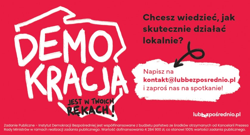 W polskim prawie istnieje szereg narzędzi, dzięki którym mieszkańcy mogą skutecznie wpływać na lokalne władze. Instytut Demokracji Bezpośredniej edukuje, jak z nich korzystać. Informacje na temat metod oddolnej demokracji znajdziecie na stronie www.LubBezposrednio.pl. Poniżej prezentujemy najciekawsze z nich.