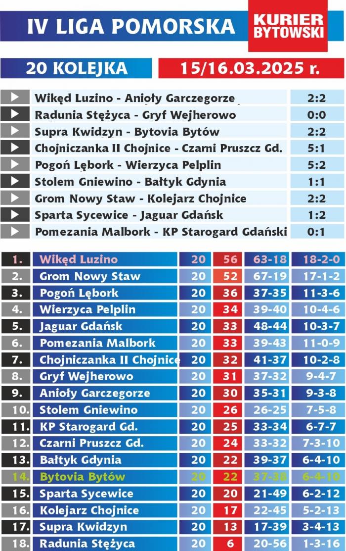 Do przerwy piłkarze Bytovii przegrywali w Kwidzynie z miejscową Suprą 0:2. W drugiej odsłonie zagrali jednak znacznie lepiej, ratując remis po trafieniach Adriana Szultki i Adama Grossa.