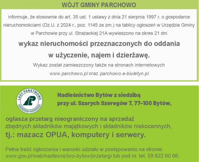 Wójt Gminy Parchowo zamieszcza wyciąg z ogłoszenia o III przetargu