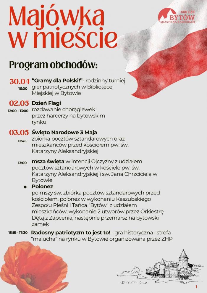 W te dni obchodzimy Święto Pracy (1 maja), Dzień Flagi Rzeczypospolitej Polskiej (2 maja) oraz Święto Konstytucji 3 Maja i Święto Najświętszej Maryi Panny Królowej Polski (oba 3 maja).