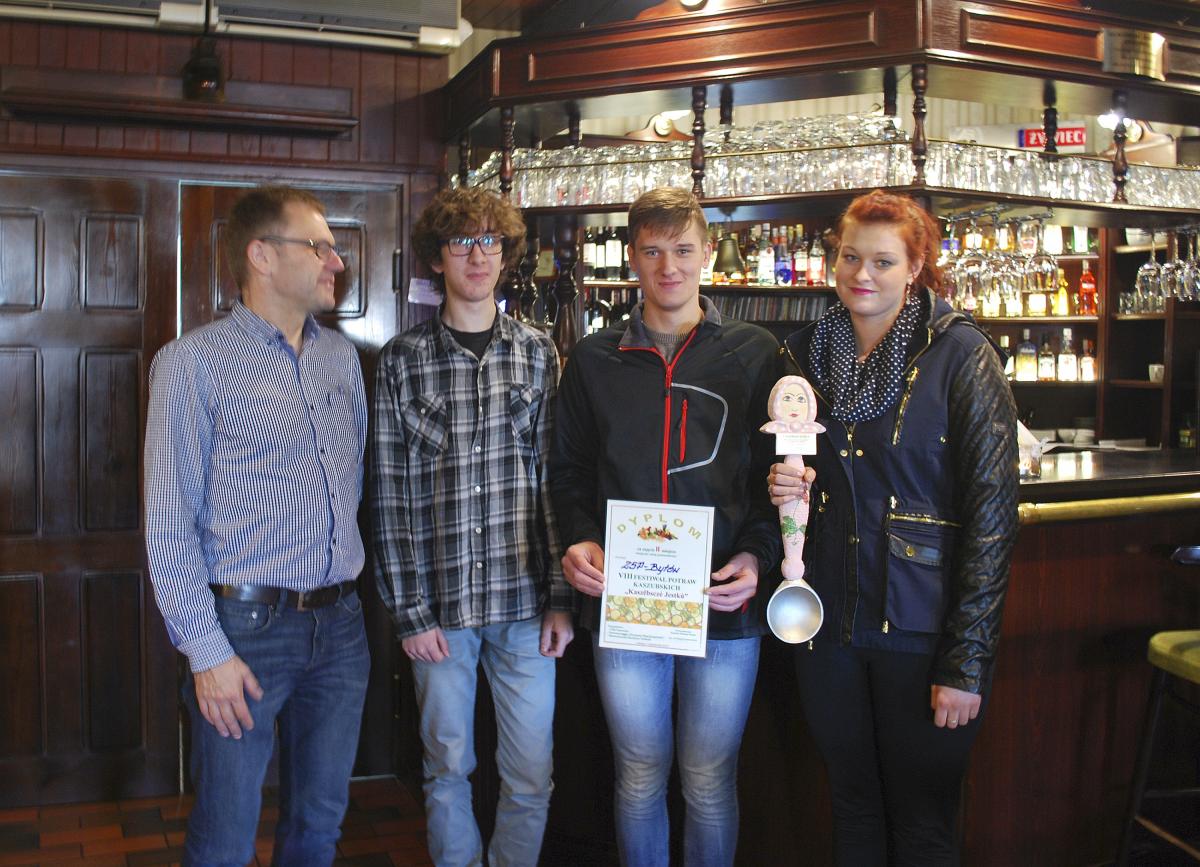 Festiwal Potraw Kaszubskich w Ostrzycach to konkurs kulinarny, w którym biorą udział reprezentanci szkół, hoteli, kół gospodyń wiejskich itd. W tegorocznej edycji swoich sił spróbowali też uczniowie trzeciej klasy o profilu kucharz Zespołu Szkół Ponadgimnazjalnych w Bytowie: Paulina Malek, Mateusz Reca i Jakub Lonski. - Otrzymaliśmy propozycję wzięcia udziału. Naszych uczniów nie trzeba było namawiać. Sami zrobili zakupy i to oni głównie przygotowali przepis - mówią dyrektor szkoły Aneta Domeracka, Elżbieta Simlat, nauczycielka przedmiotów gastronomicznych, i Katarzyna Stoltmann, ucząca języka kaszubskiego, które czuwały nad młodymi bytowiakami.