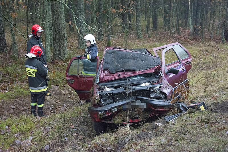 18.12. po południu na trasie Jutrzenka (gm. Borzytuchom) a Kołczygłowy, zacinający deszcz nie ułatwiał podróży kierującym. Tego dnia należało zdjąć nogę z gazu, a nie każdy to zrobił. - Ze wstępnych ustaleń mundurowych wynika, że kierujący VW Vento na łuku drogi nie dostosował prędkości do warunków drogowych, stracił panowanie nad pojazdem, zjechał na pobocze i dachował - informuje pełniący obowiązki rzecznika prasowego Komendy Powiatowej Policji w Bytowie, Jarosław Juchniewicz. Oprócz karetki pogotowia, na miejsce zadysponowano oddział OSP z Borzytuchomia oraz straż zawodową z Bytowa. - Strażacy wyciągnęli mężczyznę z pojazdu i rozpoczęli wahadłowe kierowanie ruchem. Zabezpieczono samochód, odłączono akumulator. Cała akcja trwała prawie 3 godz. - mówi zastępca komendanta Powiatowej Państwowej Straży Pożarnej w Bytowie, Stefan Pituch.
