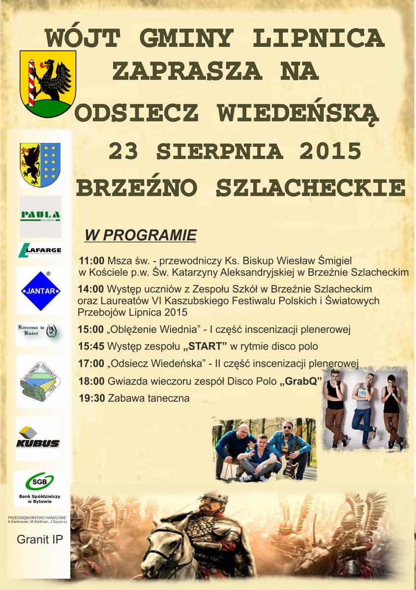 W niedzielę 23.08. w Brzeźnie Szlacheckim odbędzie się inscenizacja odsieczy wiedeńskiej. W programie oprócz walki msza św., występy uczniów z miejscowej szkoły, koncerty grup disco polo i zabawa taneczna.