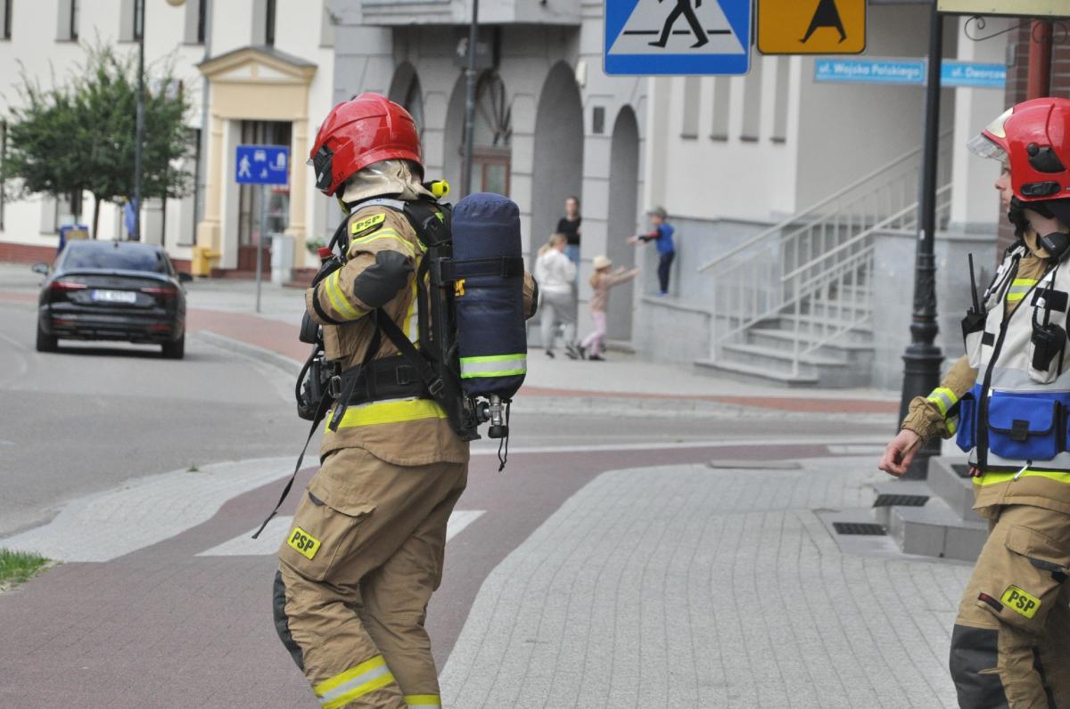 Strażacy ze specjalistycznym sprzętem ratowniczym zareagowali na zgłoszenie wycieku substancji, który okazał się być spowodowany przez nieszczelny akumulator.