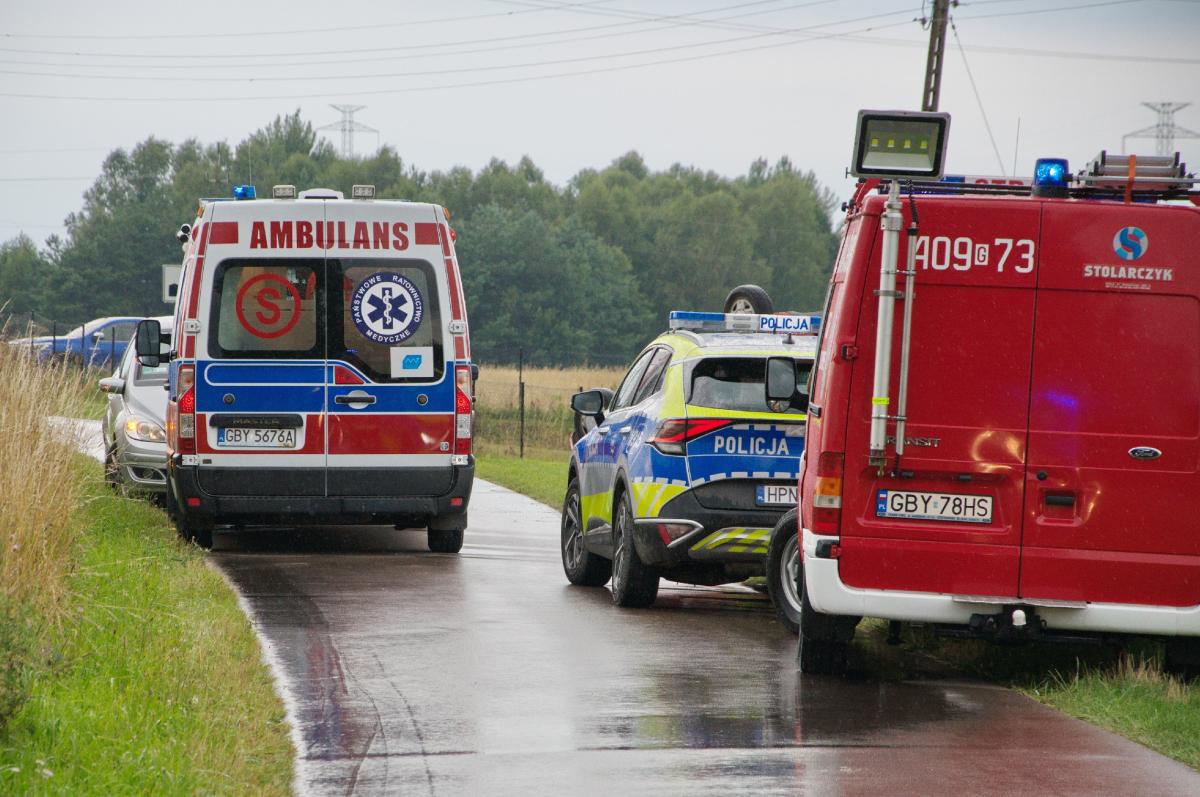 Galeria zdjęć z zdarzenia drogowego na drodze kierującej do Masłowic Trzebiatowskich, gdzie doszło do kolizji między Meredesem a Chevroletem. Na zdjęciach widać zdezelowane pojazdy, akcję policji, ratowników medycznych oraz strażaków z OSP Tuchomie i PSP Bytów. Szczegóły w artykule.