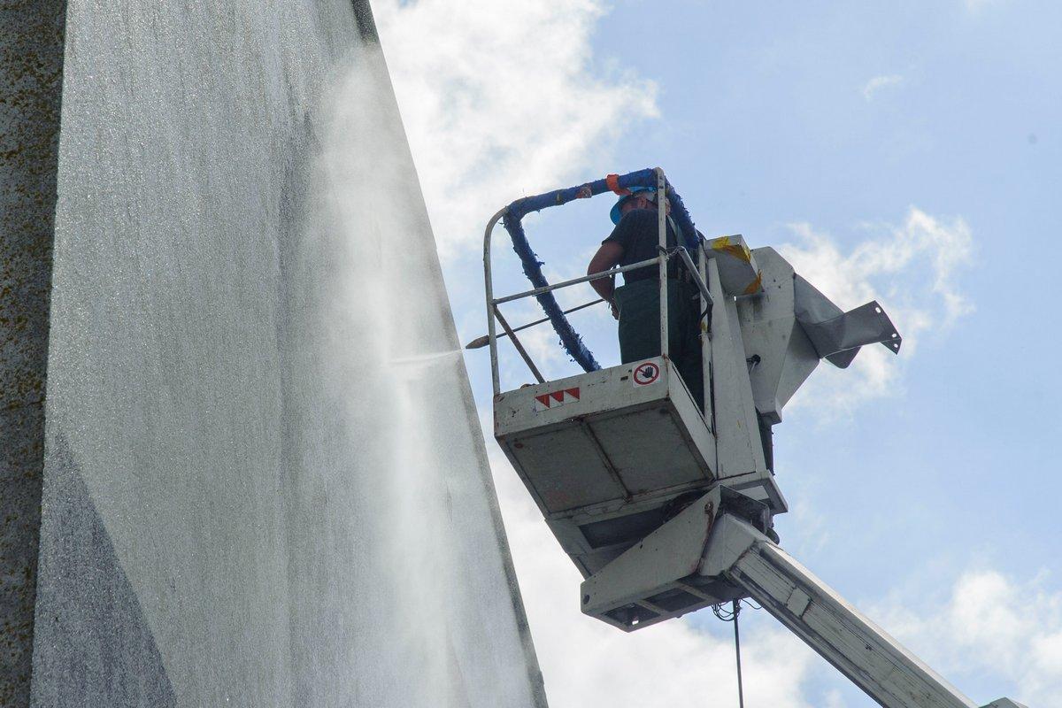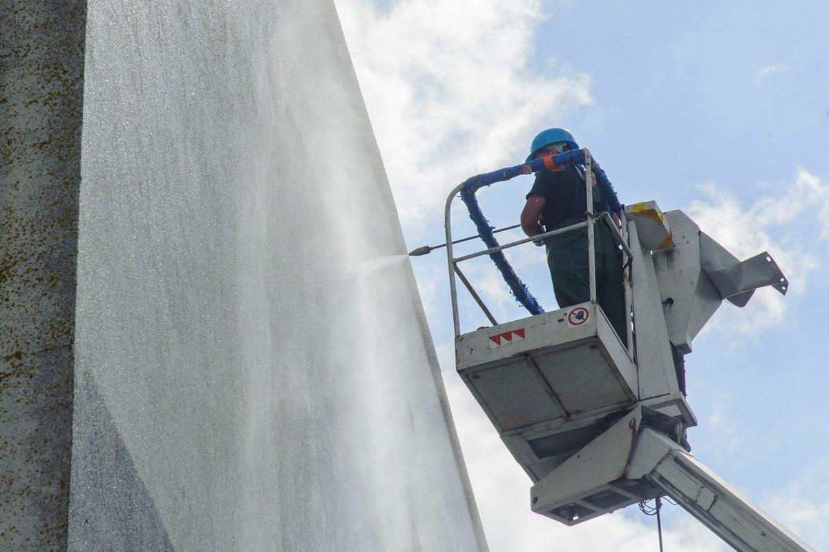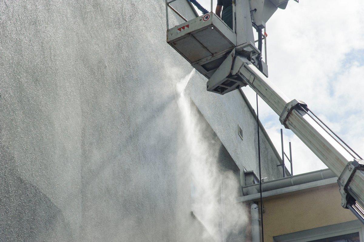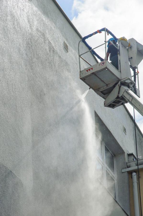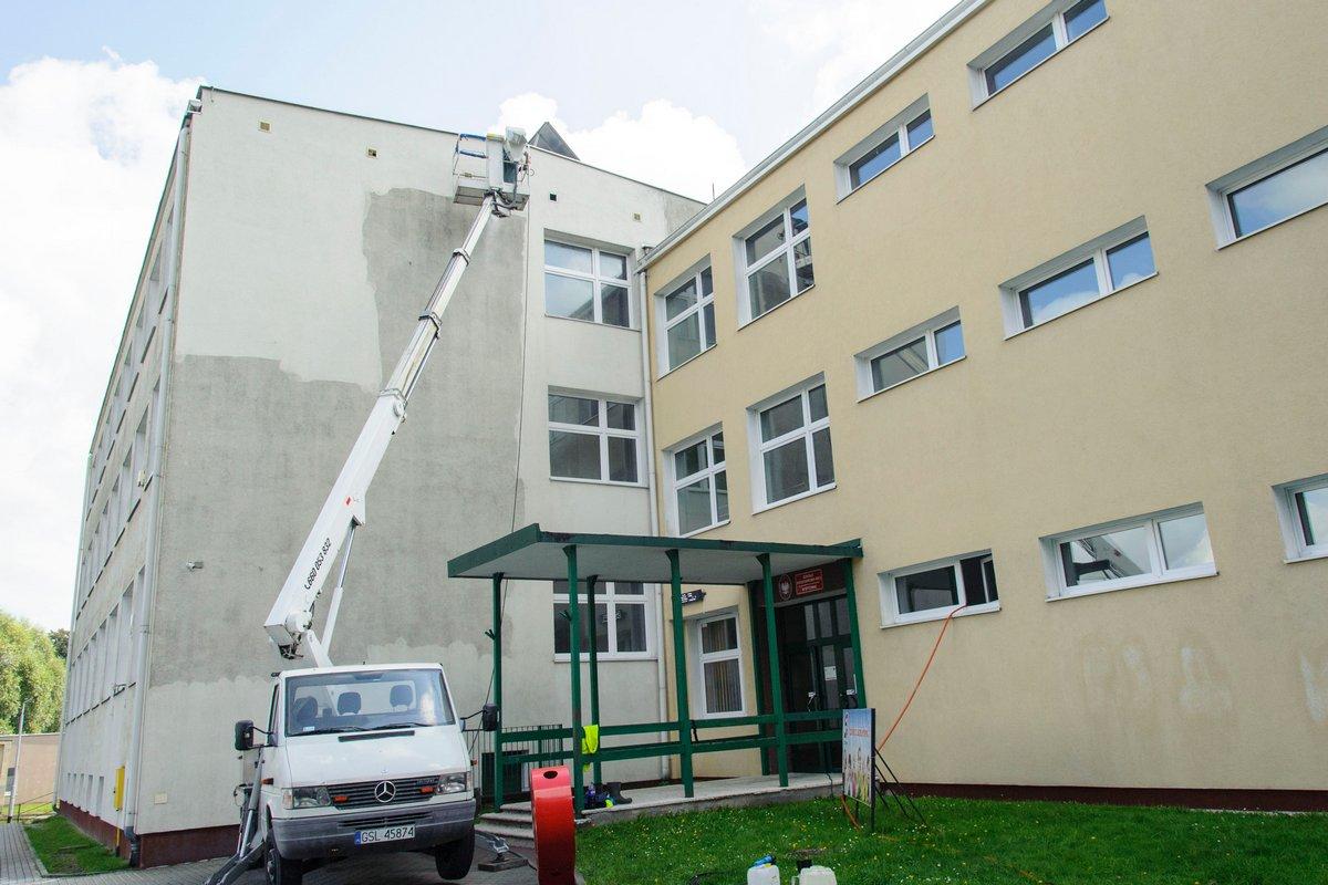 Wynajęta przez gminę Bytów firma odświeży ścianę frontową oraz ścianę od strony boiska sportowego.